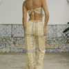 A nossa calça é perfeita pros dias quentes e pra compor seus looks. Ela tem a modelagem reta, soltinha no corpo e com elástico na cintura e o tecido é super leve. Para usar ela mais cintura baixa só escolher um tamanho acima do seu.