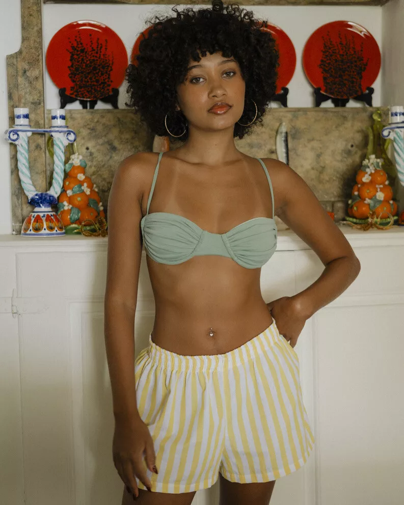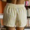 O Short Listrado é aquela peça prática e estilosa que combina com tudo. Ele é mais curtinho, tem elástico na cintura e modelagem retinha que deixa o look leve e confortável. Fresco, versátil e perfeito pra usar com a bata combinando ou montando looks separadas.