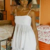 A nossa Bata é aquele look fresquinho e superdelicado. Ela é compridinha, justinha no busto e com amarração nas alças, que deixa tudo mais charmoso. Com amarração nas costas, que garante conforto e um caimento perfeito. O busto estruturado contrasta com a modelagem soltinha e ampla no restante da peça. Ela faz conjunto com o nosso short laise off white.