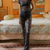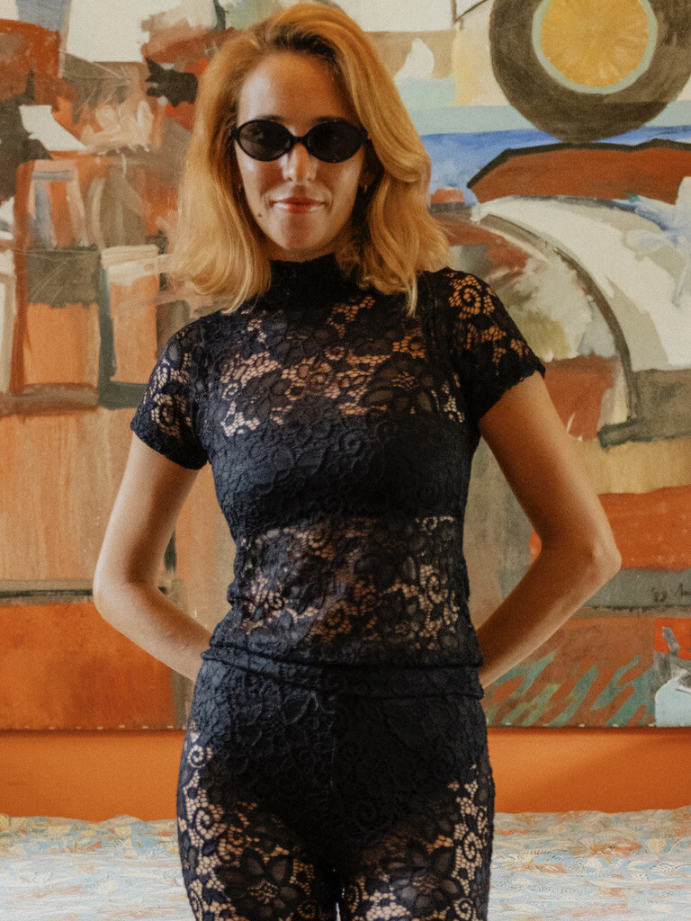 A Blusa Renda é o famoso essencial só que nada básico. Com comprimento até a cintura, manga curta e golinha alta, ela é transparente e não acompanha top por baixo. Perfeita pra montar um look super cool, seja com a calça de renda ou combinando com outras peças.