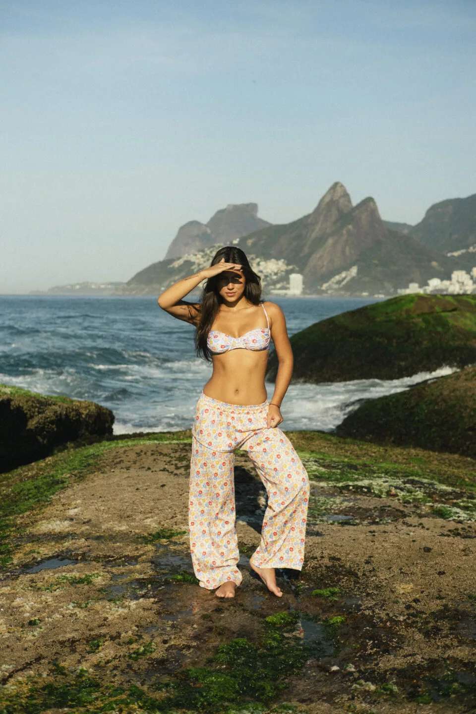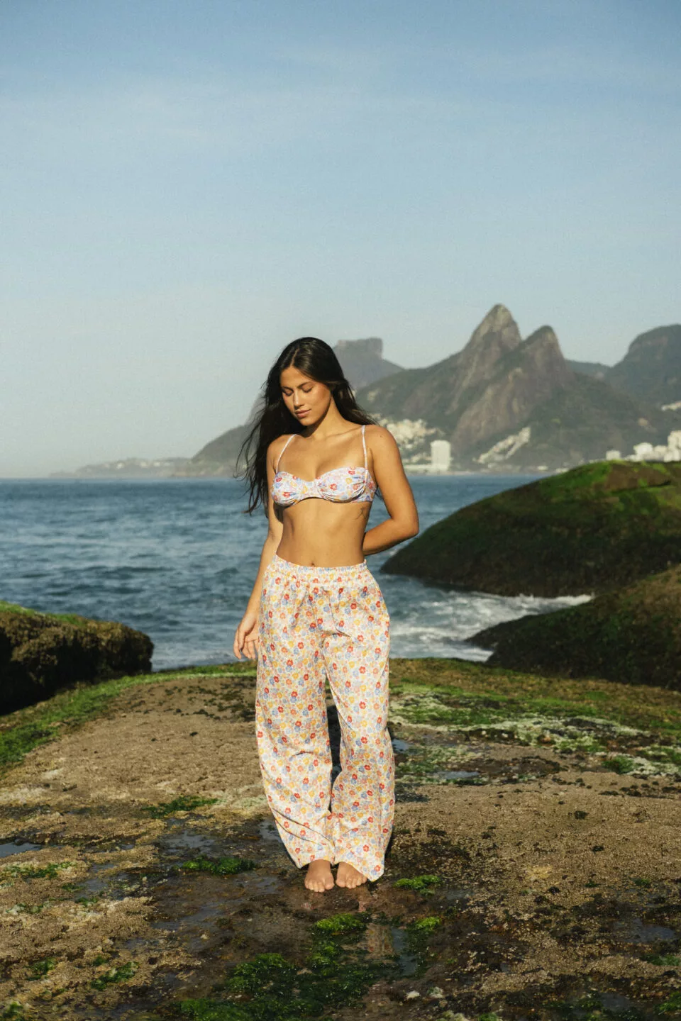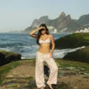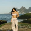 A nossa calça é perfeita pros dias quentes e pra compor seus looks. Ela tem a modelagem reta, soltinha no corpo e com elástico na cintura e o tecido é super leve. Para usar ela mais cintura baixa só escolher um tamanho acima do seu.