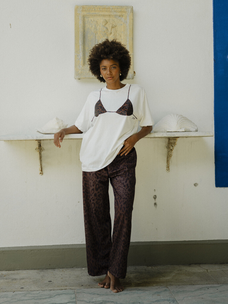 A nossa calça é perfeita pros dias quentes e pra compor seus looks. Ela tem a modelagem reta, soltinha no corpo e com elástico na cintura e o tecido é super leve. Para usar ela mais cintura baixa só escolher um tamanho acima do seu.