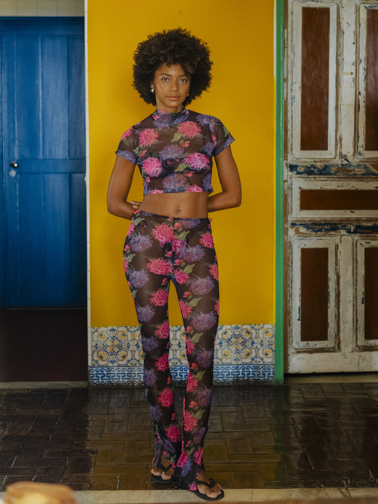 A Calça Tule é a peça ideal pra quem ama um look leve e cheio de estilo. De cintura alta, modelagem mais sequinha e flare, ela alonga a silhueta e deixa o look mais interessante. Não acompanha calcinha, perfeita pra usar com uma T-shirt ou montar o conjunto com o Top Tule.