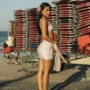 A nossa saia de tule é aquela peça versátil que a gente ama, vai do look da praia pro look da noite. Ela é coladinha no corpo, com tecido de tule. A amarração lateral dá um charme extra. Ela dá para usar também como uma blusa.