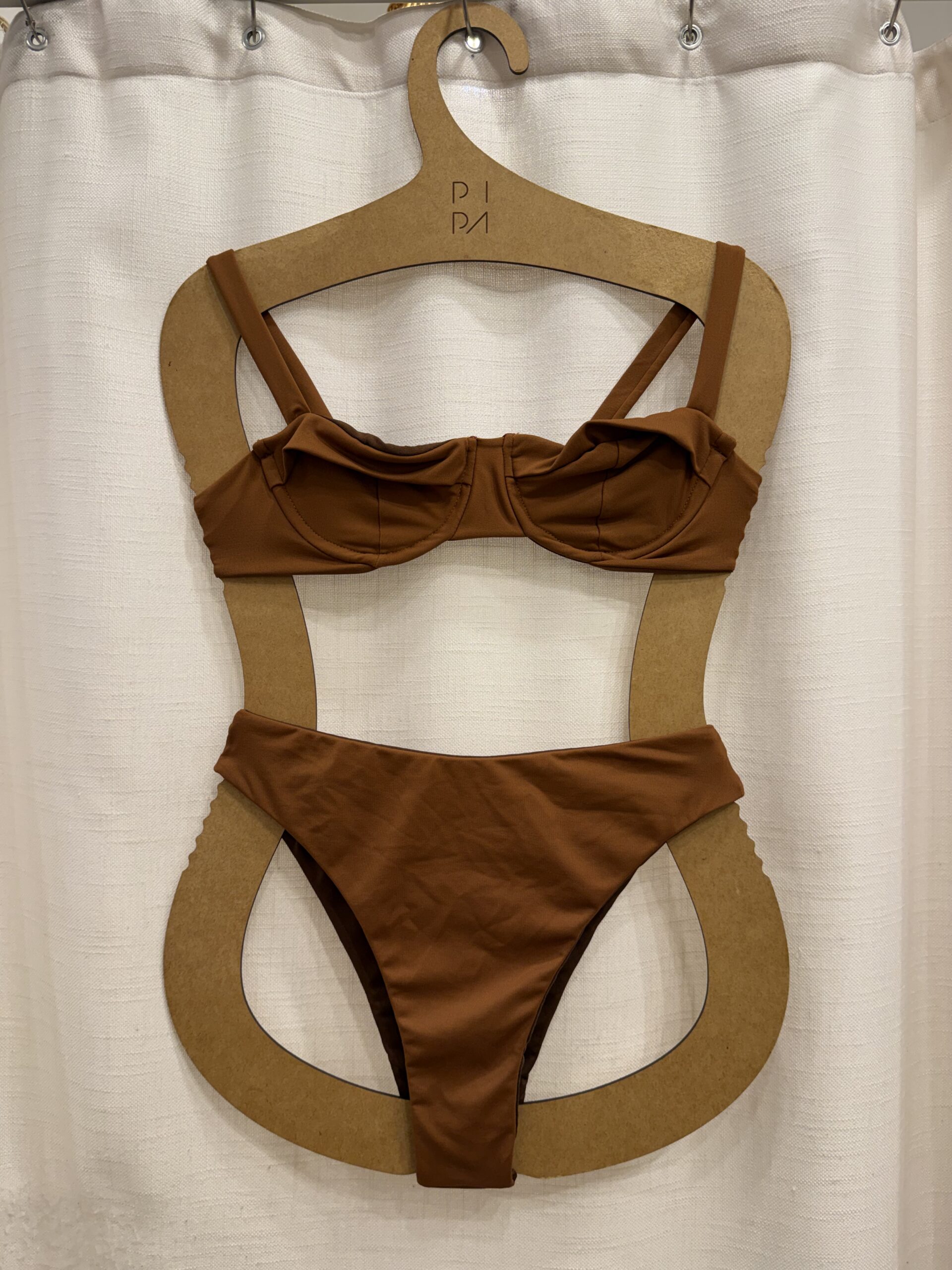 Nosso conjunto é formado pelo nosso top Pilar que amamos, alças mais grossinhas, com sustentação no busto e decote formato coração. E pela nossa calcinha Alta, que tem aquele charme vintage com a modelagem de cintura alta, versátil – muito mais do que um biquíni – e super confortável.